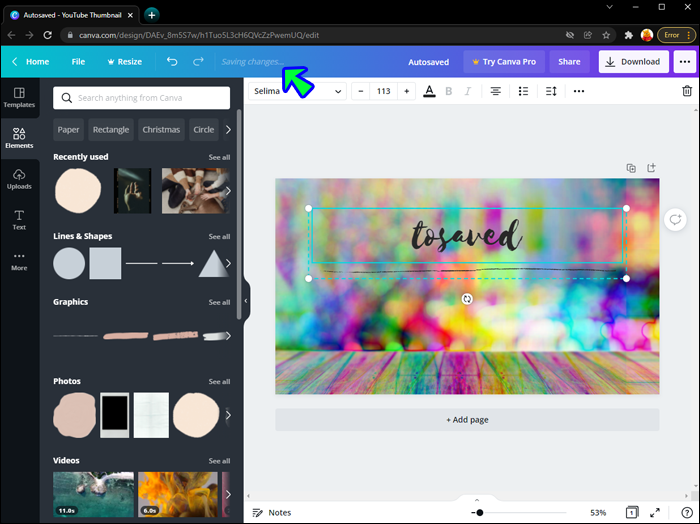 - Change your design however you want. When adding changes, the text “All changes saved” will be replaced by “Saving changes.” This signifies that it is currently saving all of the things you’ve altered.