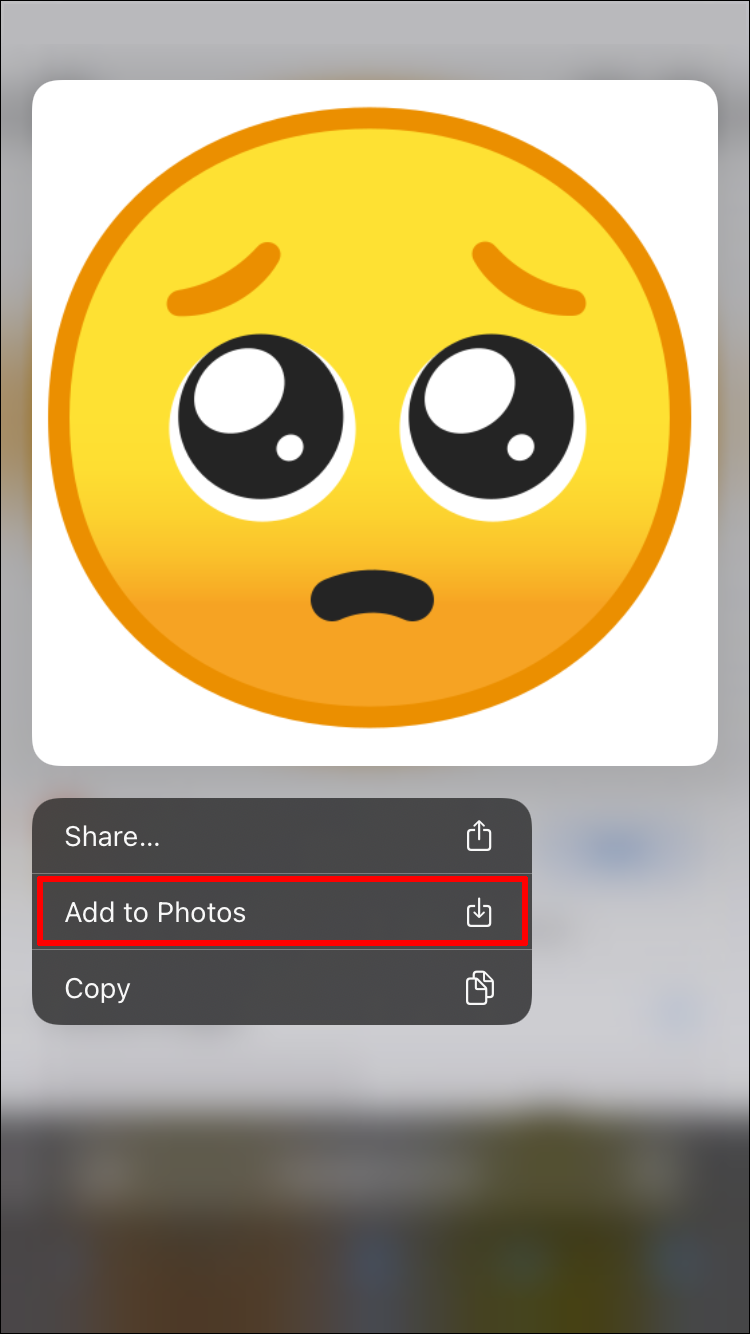 - Tap and hold the emoji again and select “Add to Photos… .”
