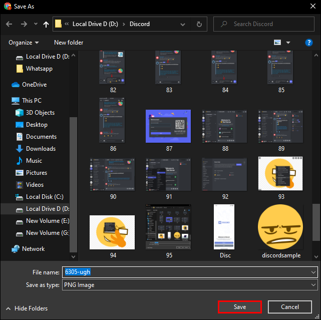 - Choose where you want to save the emoji. We recommend creating a separate folder with Discord emojis so that you can find them easily later on.