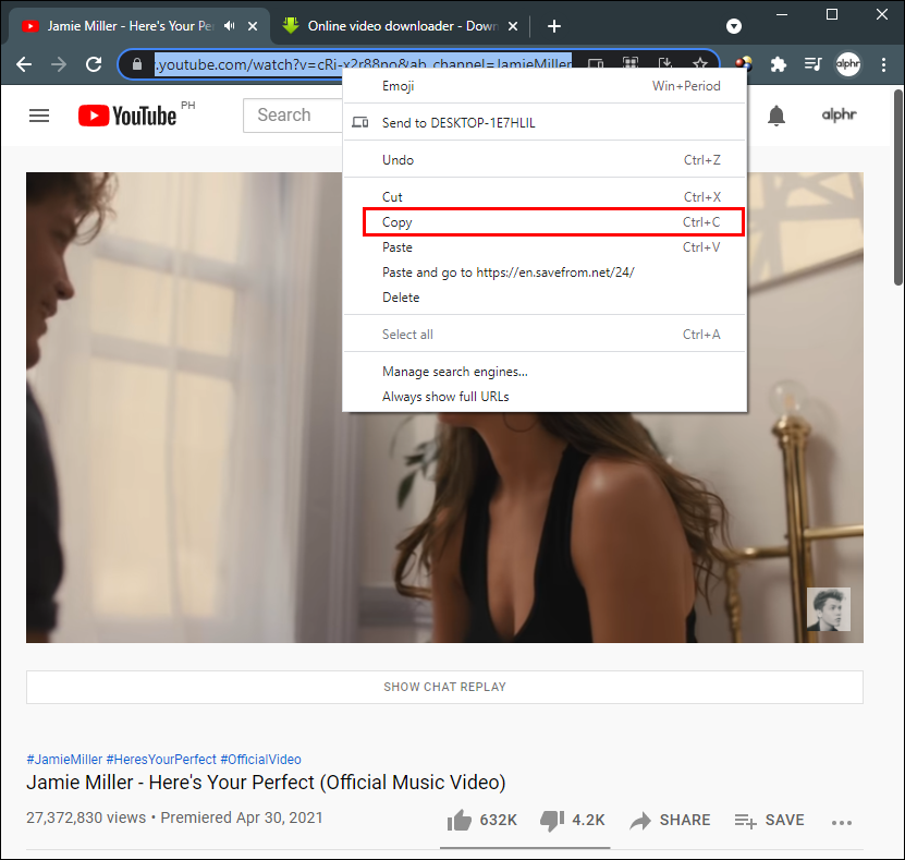 If this doesn’t work, you can install an application like 4K Video Downloader or use online video downloaders.