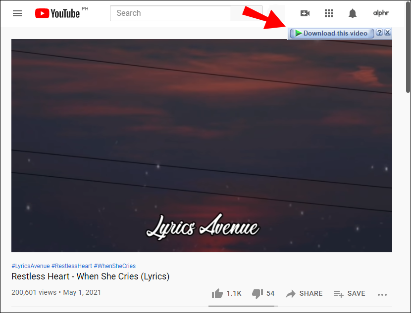 - Play the video that you want to download. You’ll see a Download this video option at the top-right corner of the video.