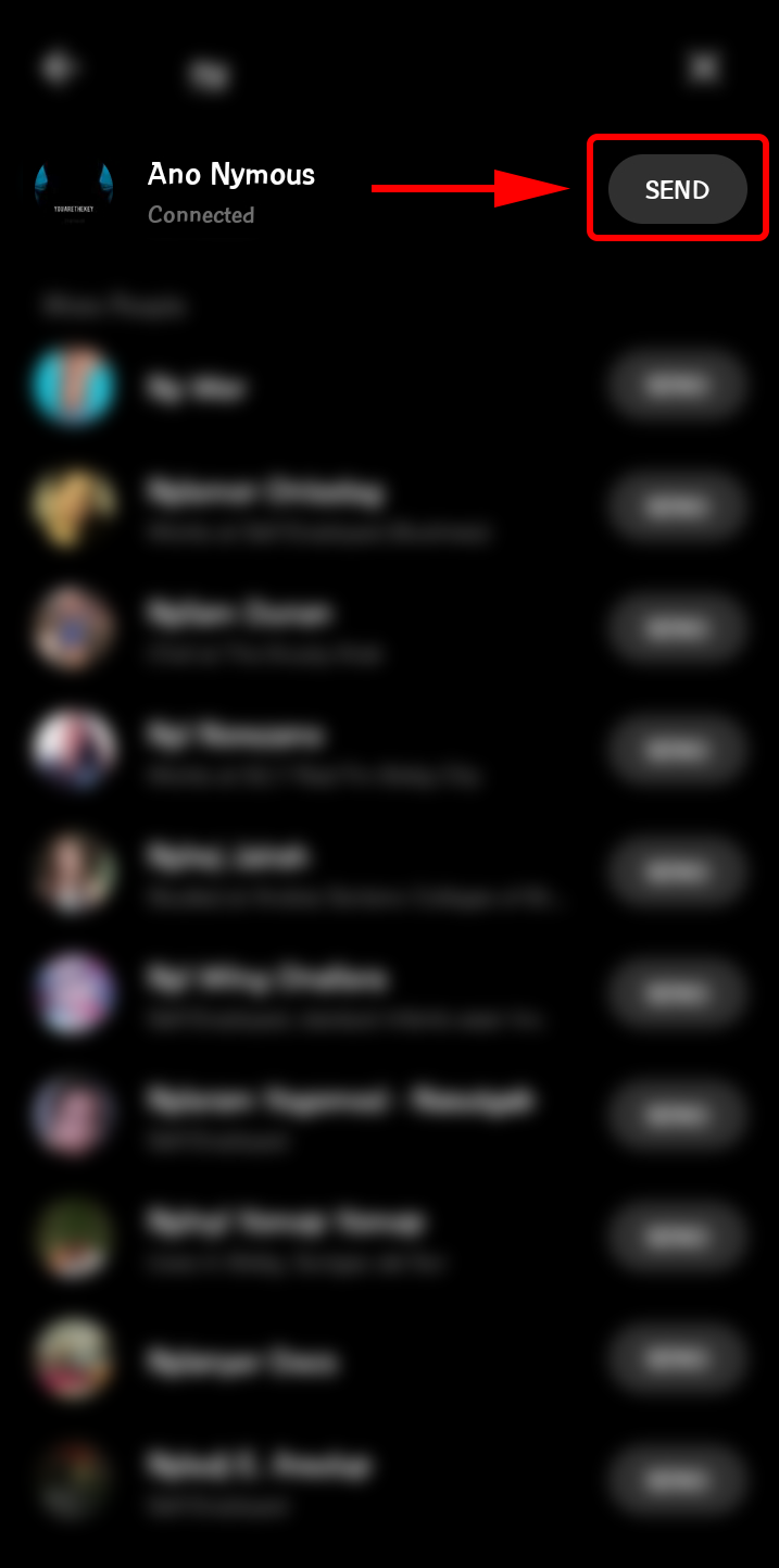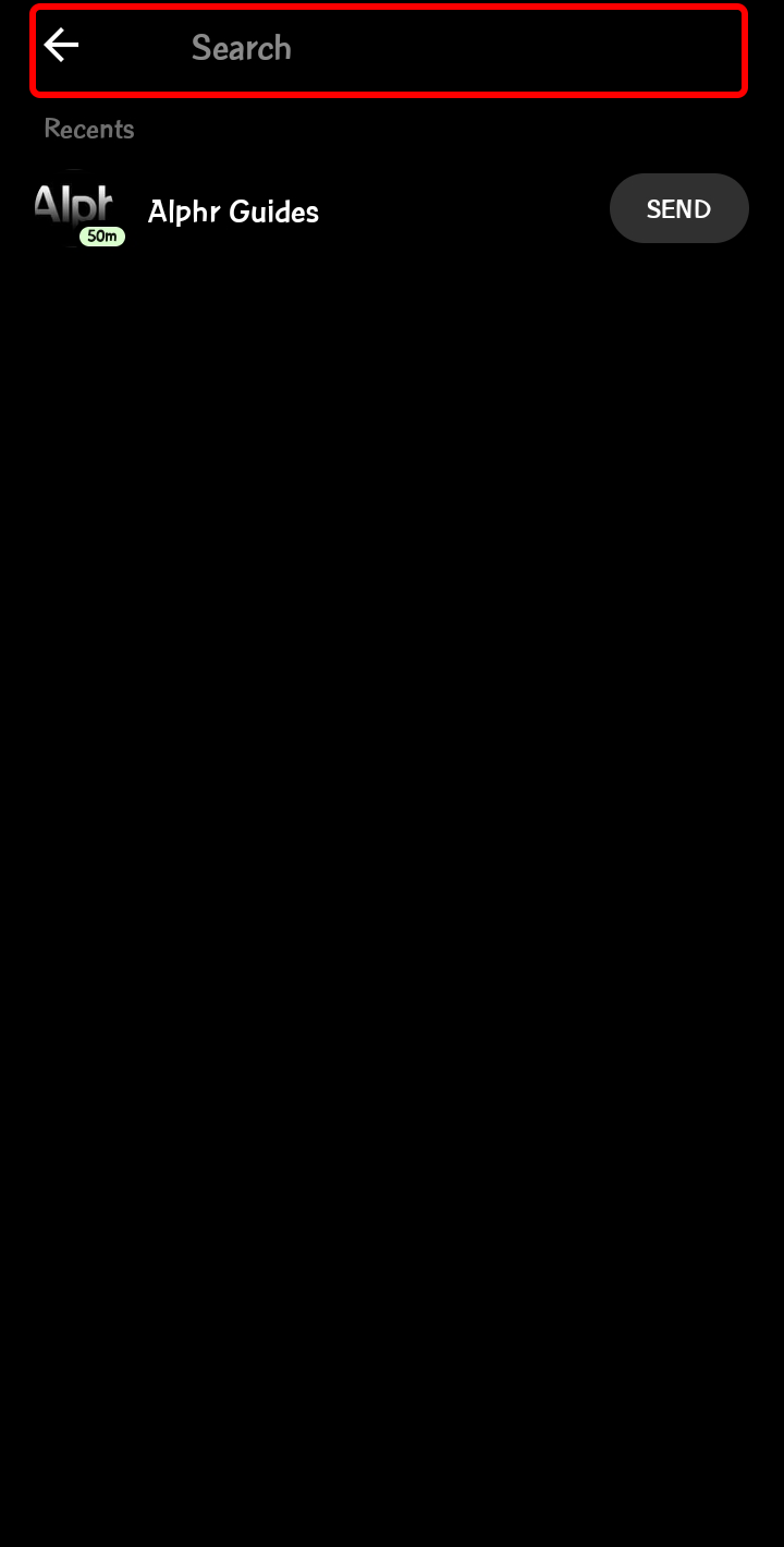 3. Enter the person’s or group’s name in the search bar and press “Send.”