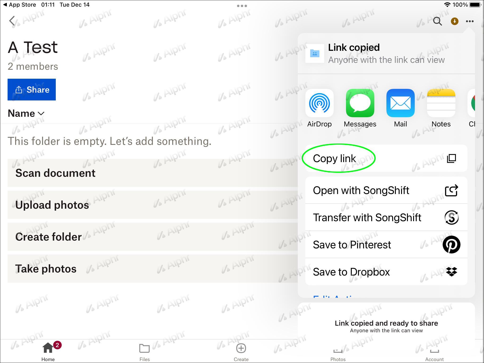 The mobile app gives you the convenience of accessing your files on the go. It offers all the same features as the desktop version, including link sharing. To share a Dropbox link from an iPhone, follow these steps: