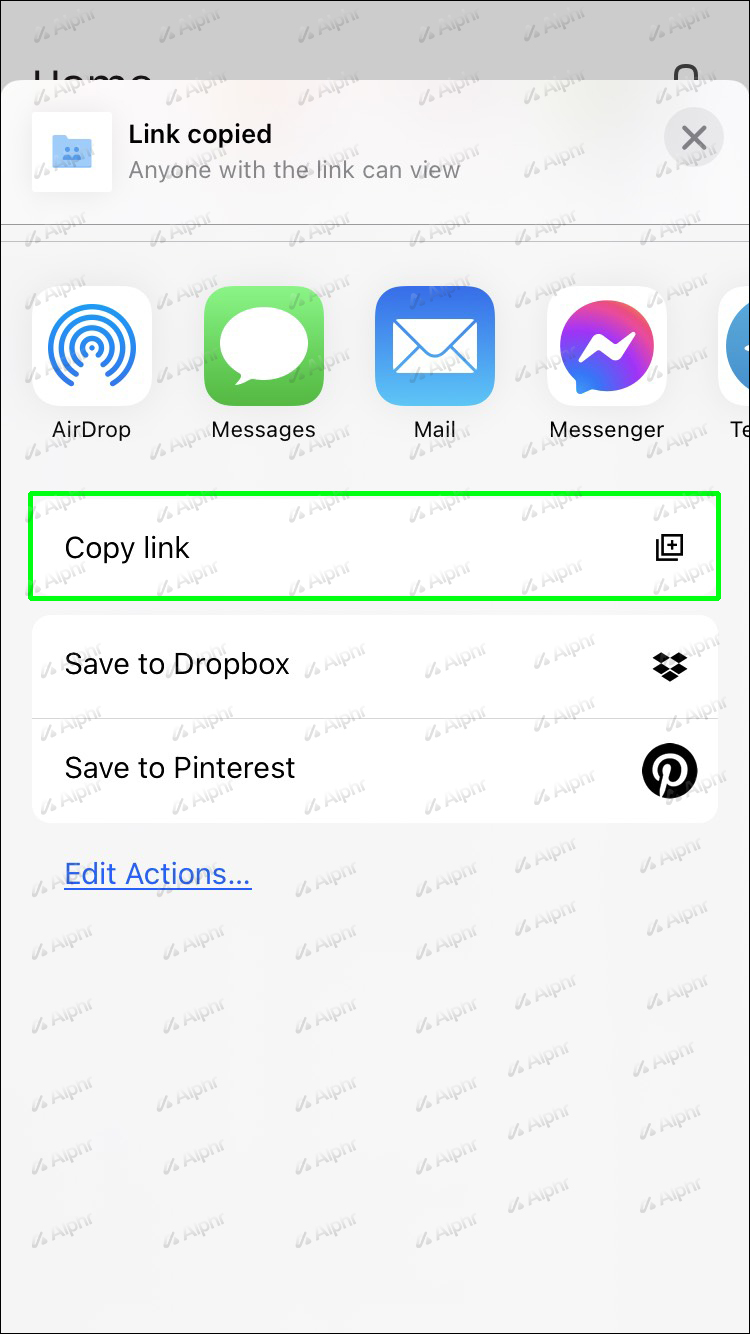- Your link is now in your clipboard. You may then share it by copying and pasting it in an email or message.
