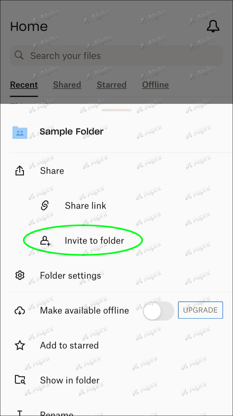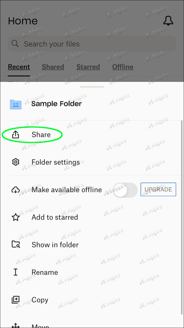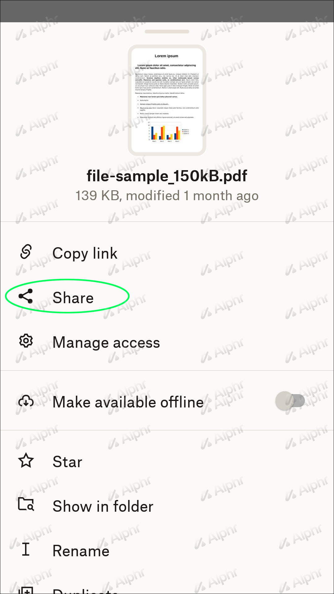 - To share a file or folder, tap the three vertical dots on Android or “…” next to the file or folder.