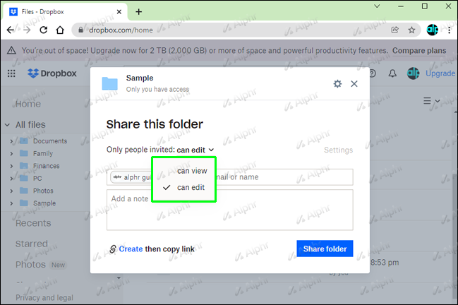 - Choose “Can view” or “Can edit” beneath the recipients’ list.