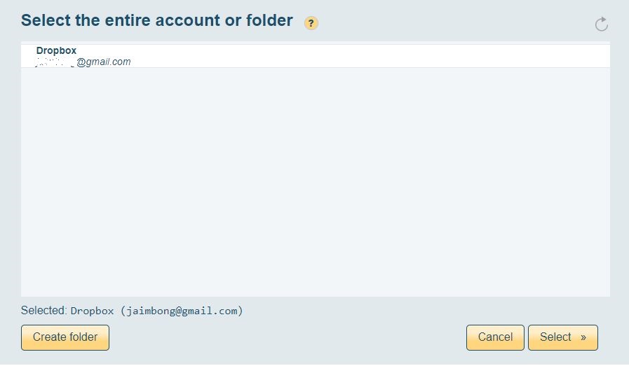 - Your Dropbox folders will now be presented to you in a file explorer-style window; click on the folder you wish to sync and then press the yellow Select button.