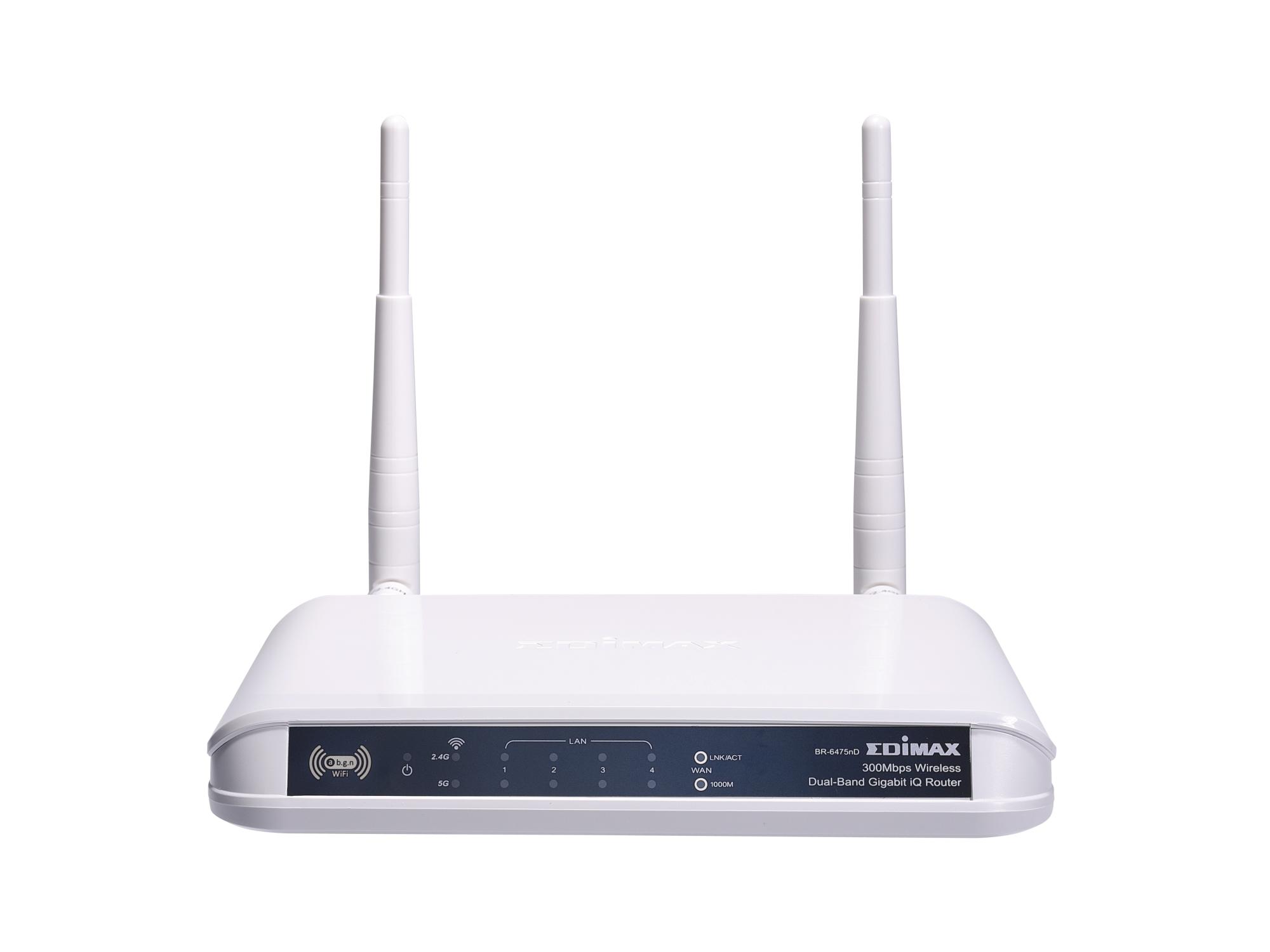 The Edimax BR-6475nD is one of the cheapest dual-band routers around, and it really does show. It’s a plain white box, with a few blinking lights on the front whose most striking feature is its two large antennae.