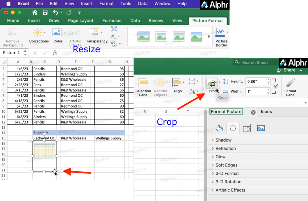 - Resize the image to fit your spreadsheet. You can also crop it to remove whitespace.