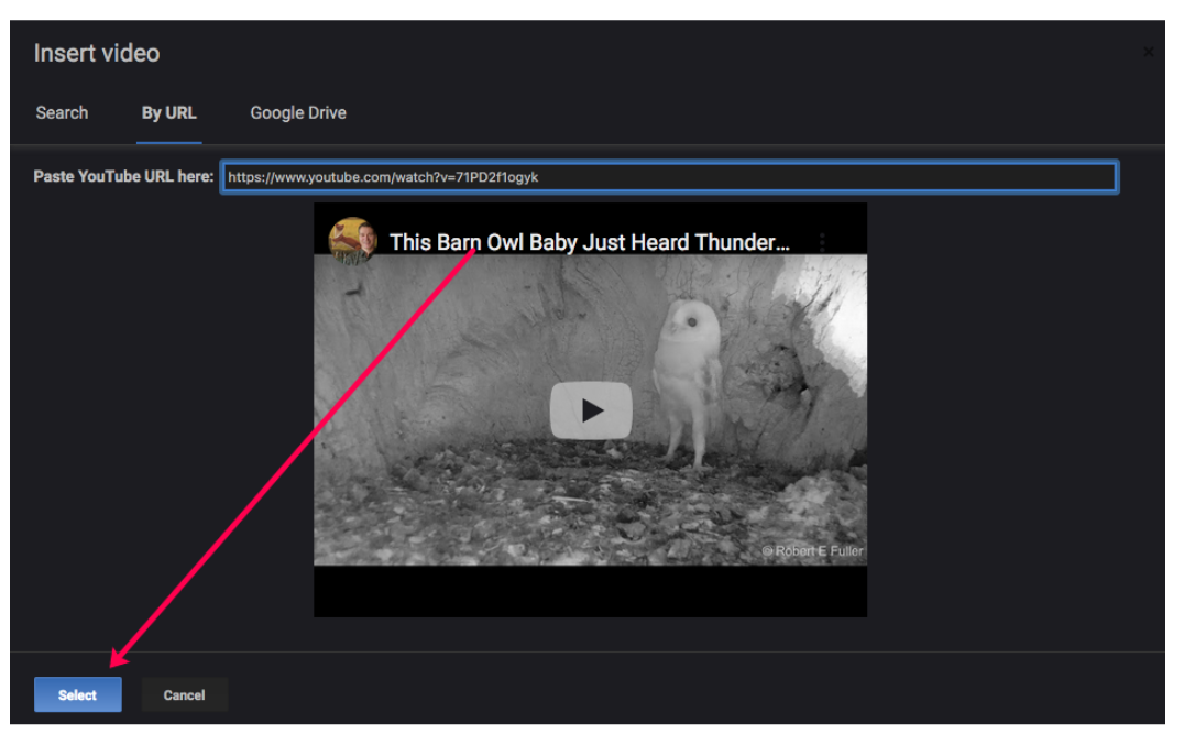 - Click Select to add the video to your slide.