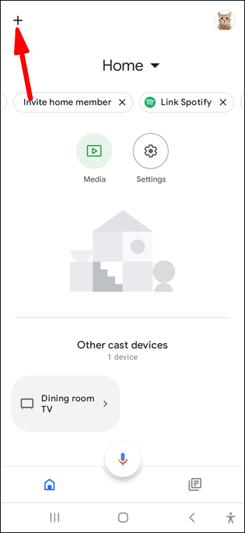 - Create a home by tapping the “+” sign if you’re new to Google Home. If you already have a home added, choose it from the list.