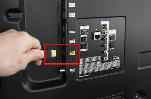 - Locate your TV’s HDMI port by checking the back of the device. You’ll typically find it on the right side (when viewed from the front).
