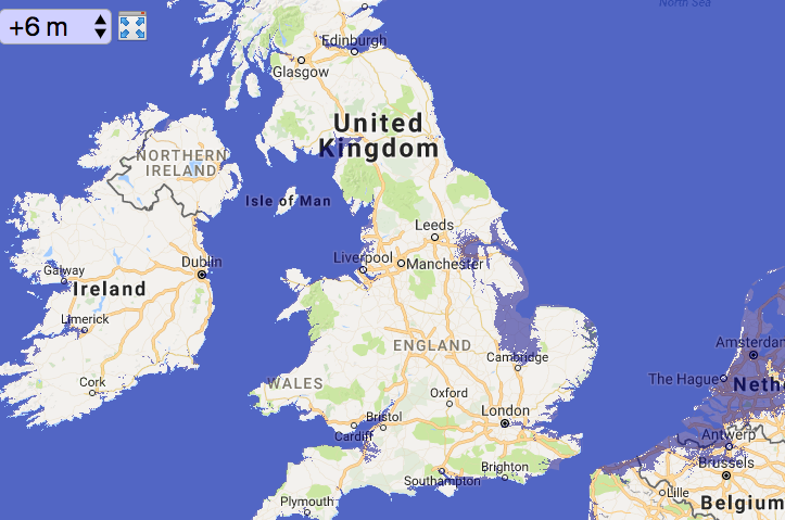 We know that 2016 was the hottest year on record, and 2015 was the hottest before that. It would be a brave person to suggest that 2017 will buck that trend. What happens to Greenland may appear to be a local issue, which you could selfishly argue is relevant only to the region’s 56,500 population, but it actually impacts us all. If all of Greenland’s ice were to melt, you’re looking at a global sea rise of 20 feet. Here’s what that looks like on a map of the UK: