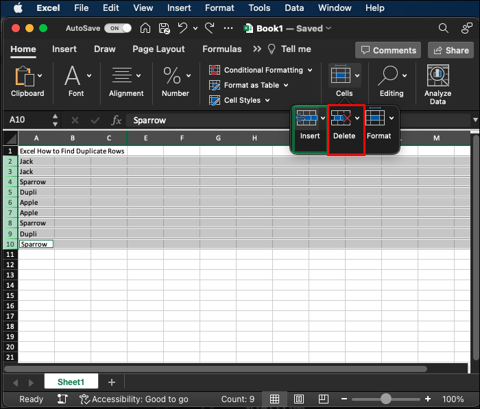 Perhaps you’ve highlighted all the duplicates or triplicates in your workbook using the above method. Afterward, you may want to delete them. This will make your whole workbook neater and less confusing.