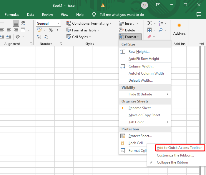 - Right-click “Lock Cell” and choose the prompt that lets you include the function in your “Quick Access” section.