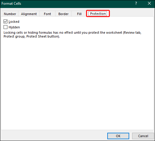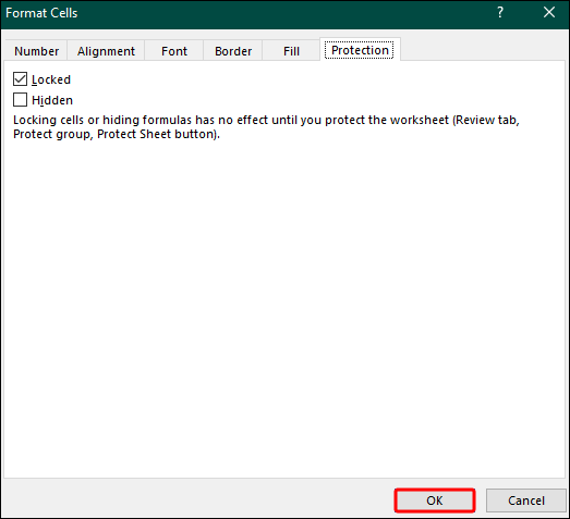 - Navigate “Protection,” check “Locked” next to the appropriate box, and choose “OK.”