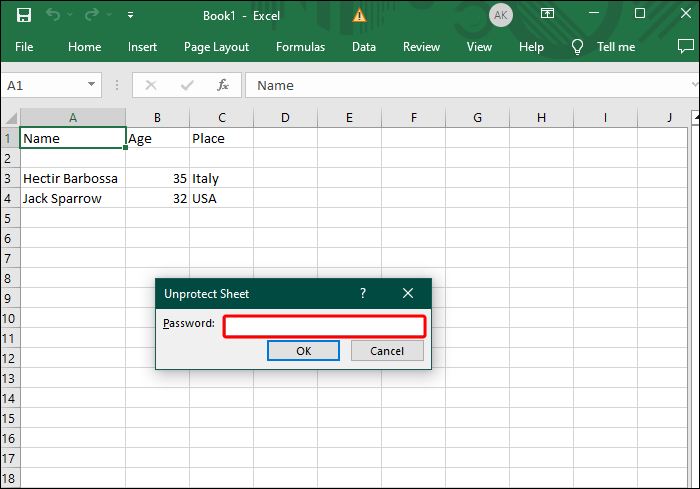 - Enter the password you used to lock your sheet and tap the “OK” button. If you haven’t restricted your sheet, proceed to the next step.