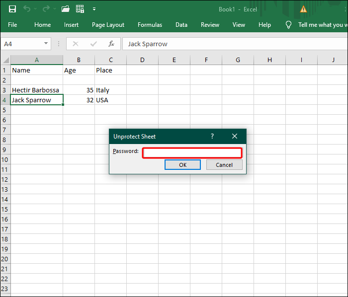 - Navigate to “Changes” and click “Unprotect Sheet.”