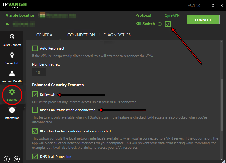 On the other hand, IPVanish offers kill switch to macOS, Android Mobile, and Windows clients only as of this writing.