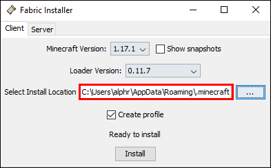 - Download the Fabric mod loader installer from https://fabricmc.net/use/.