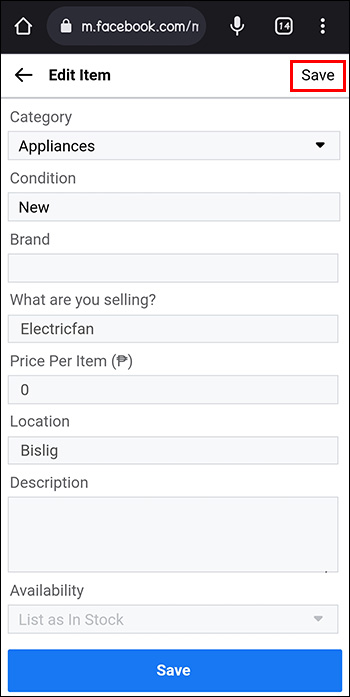 You can also edit other details of the listing, such as price, description, location, and shipping fees, using the steps above. However, some details, such as the number of units remaining on sale, are automatically updated, so you don’t need to change them. In addition, the above steps are similar on both iPhone and Android apps.