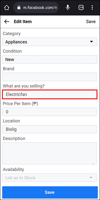 If you’re using Facebook via a mobile browser, follow the steps below to change the title of your listing: