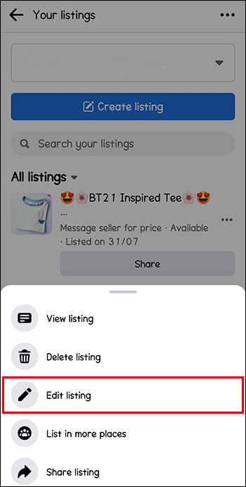 To change the title of your listing using the Facebook mobile app, follow the steps below: