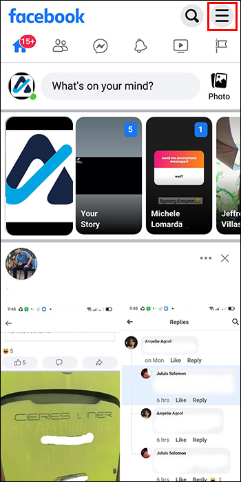 - Open the Facebook mobile app and click the three horizontal lines in the top right corner.