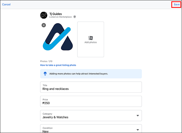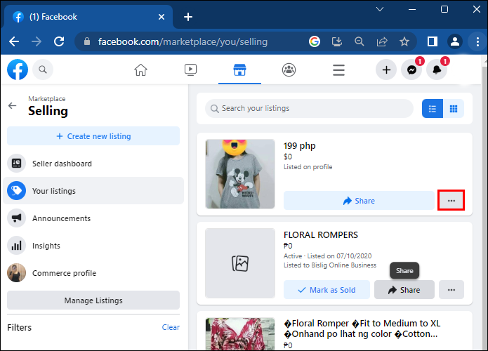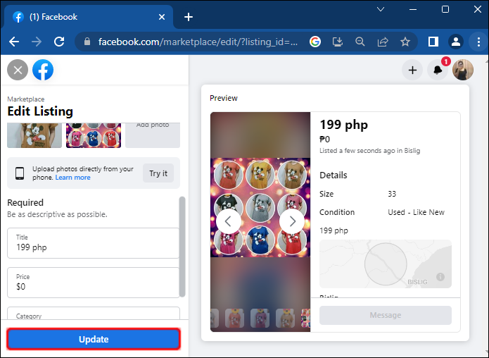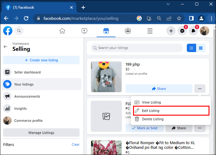 If you are using a computer to access Facebook Marketplace, follow the steps below to change the title of your listing: