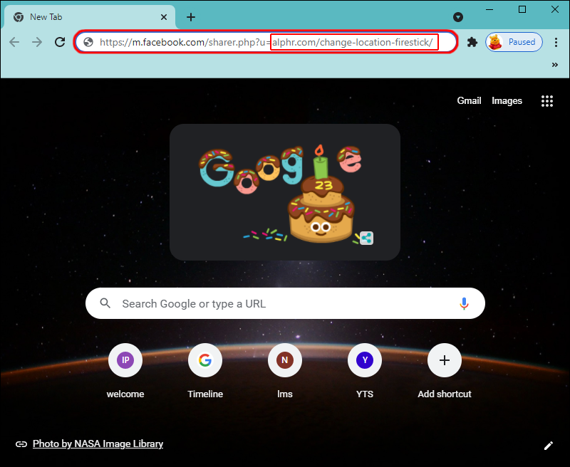 https://m.facebook.com/sharer.php?u=yourlinkhereinto the search bar. Replace “yourlinkhere” with the entire URL of the website you want in your Facebook Story.