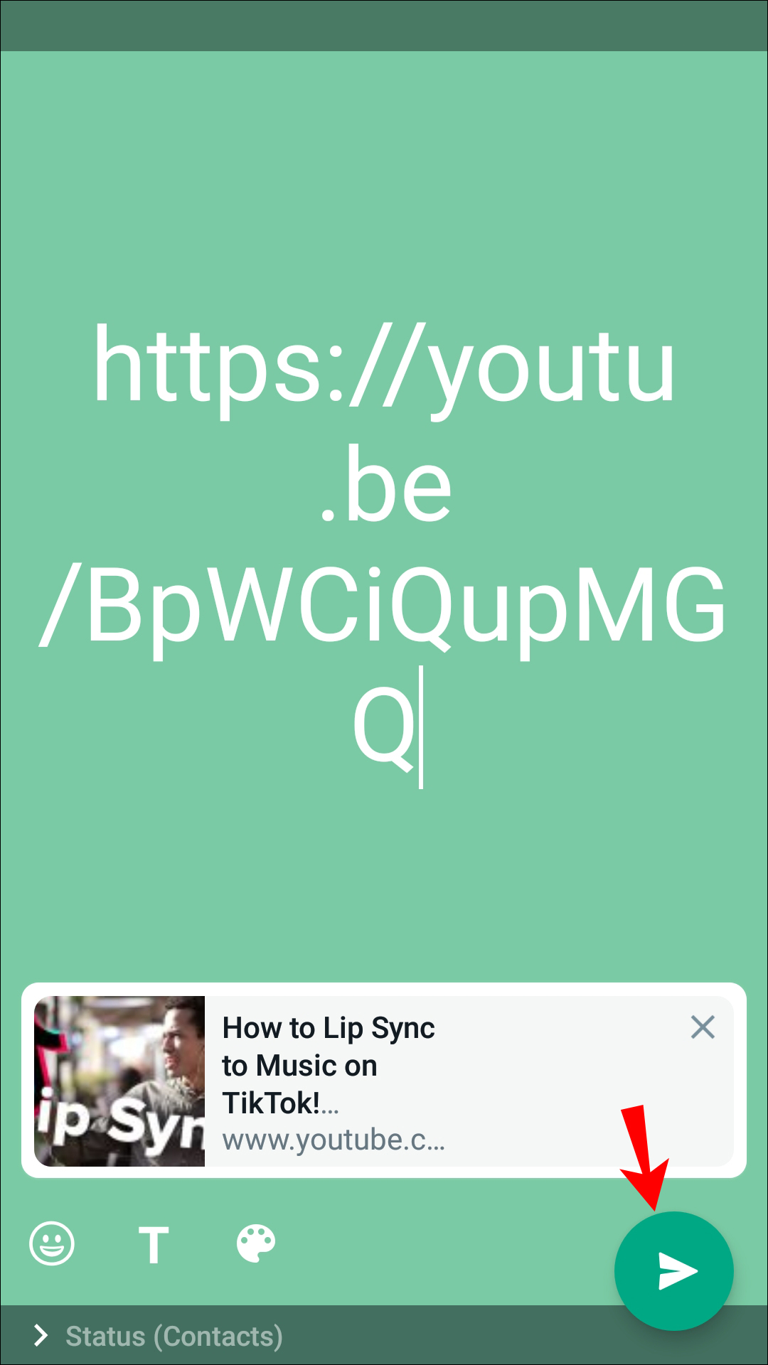 - Paste the link you want to share and make sure it shows a preview before sharing it.