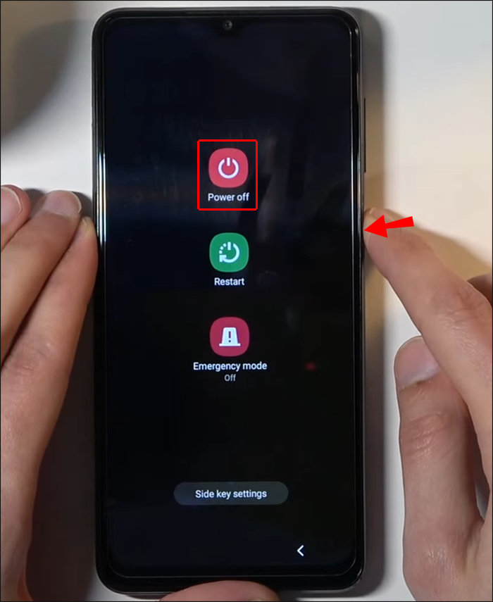 - Turn off your Samsung device by holding the Power button.