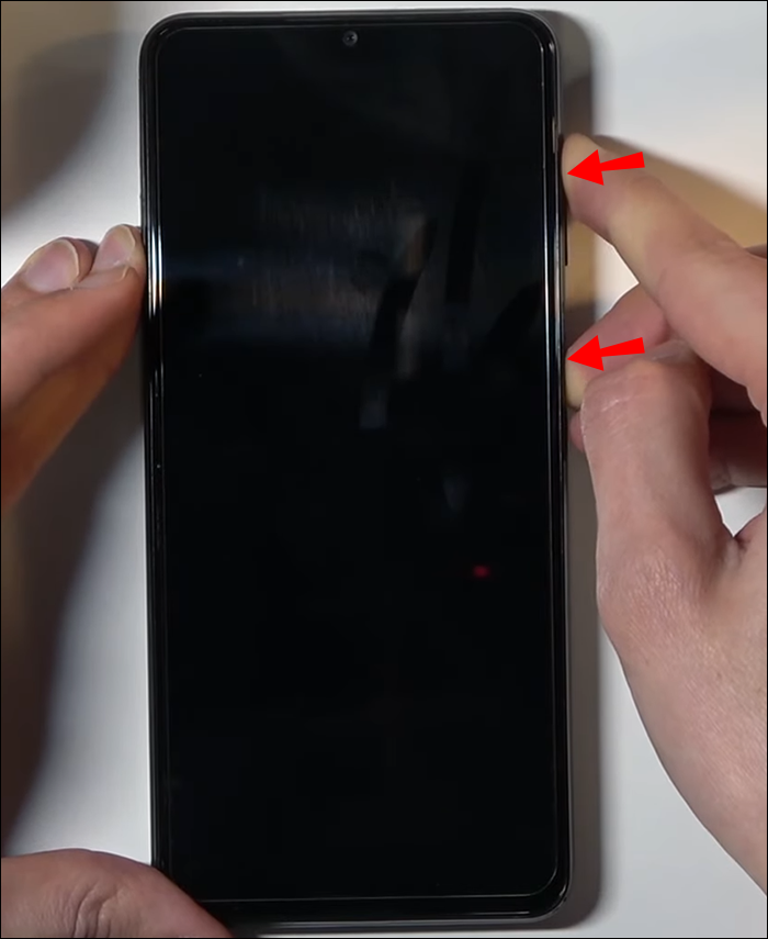 - Hold these two buttons at the same time: Volume up, Power.