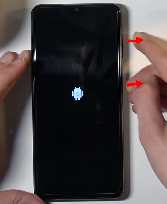 - Hold the Power button and then the Volume up.