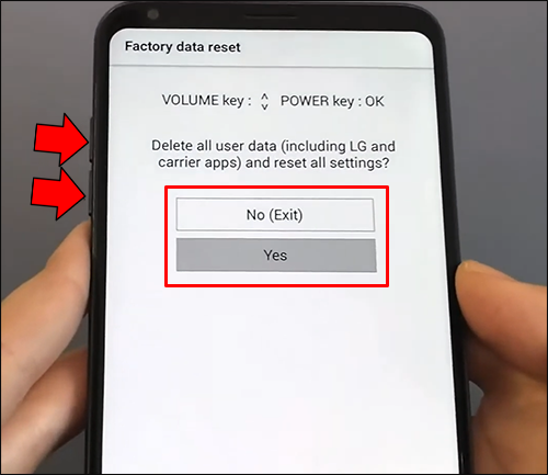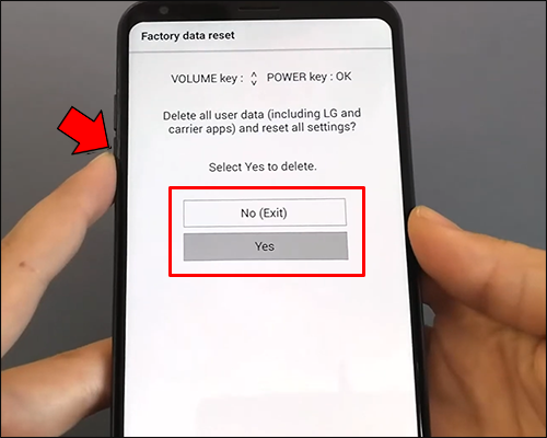 - Hit the Power button once again to confirm by pressing “Yes – delete all user data.”
