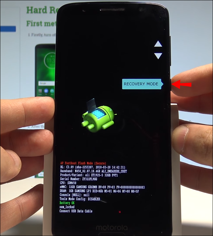 - Let go of the two button after three seconds to enter the Recovery Mode.