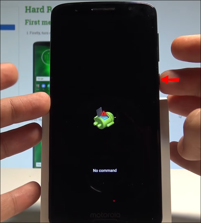 - A Google logo will appear on a white screen, followed by an Android mascot saying “No command.”