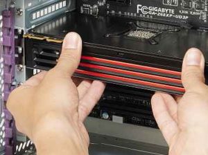Pressure on both sides of the card should be enough to make sure that it ends up seated in the expansion card slot properly. You should check the card when you think it’s in place to ensure that you’ve made proper contact. If you can still see some of the card’s slot sticking out, then push the relevant side in a bit further.