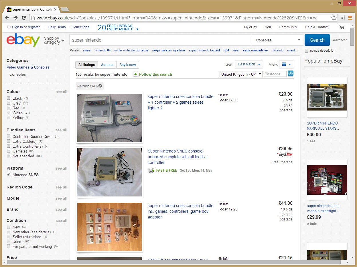 Setting up an emulator isn’t the only way to play old gaming classics. Jump onto eBay and you can often find the original hardware. Demand has kept prices pretty buoyant, however: you’ll pay in the region of £60 for a Commodore 64 with a handful of games, and around the same for a Super Nintendo. The Sega Megadrive has depreciated faster, so if you’re after a sniff of Sonic the Hedgehog as it was meant to be played, you might need only £30 for an original 16-bit console.