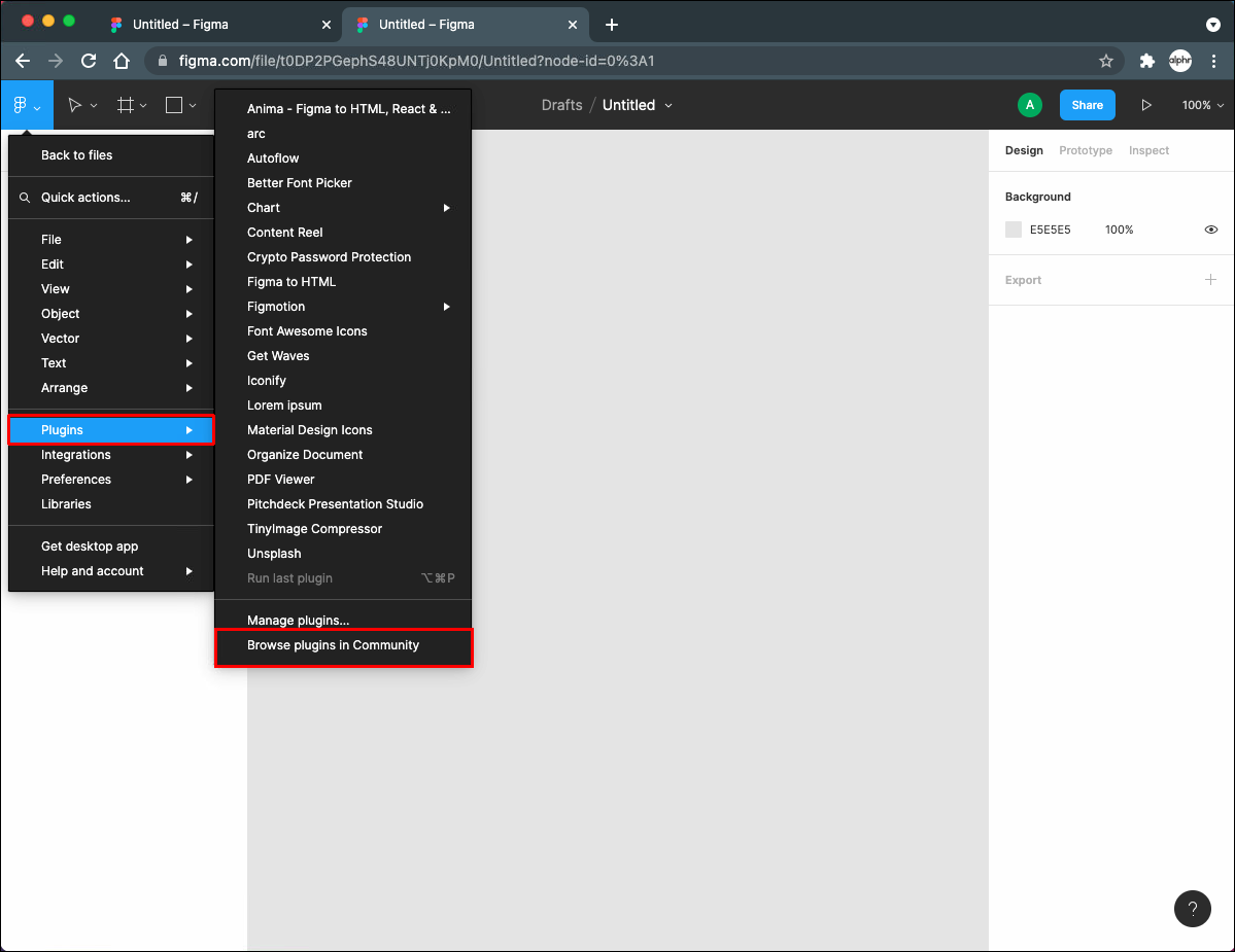 - Access the main menu again, select “Plugins,” and then select “Figma to Code.”