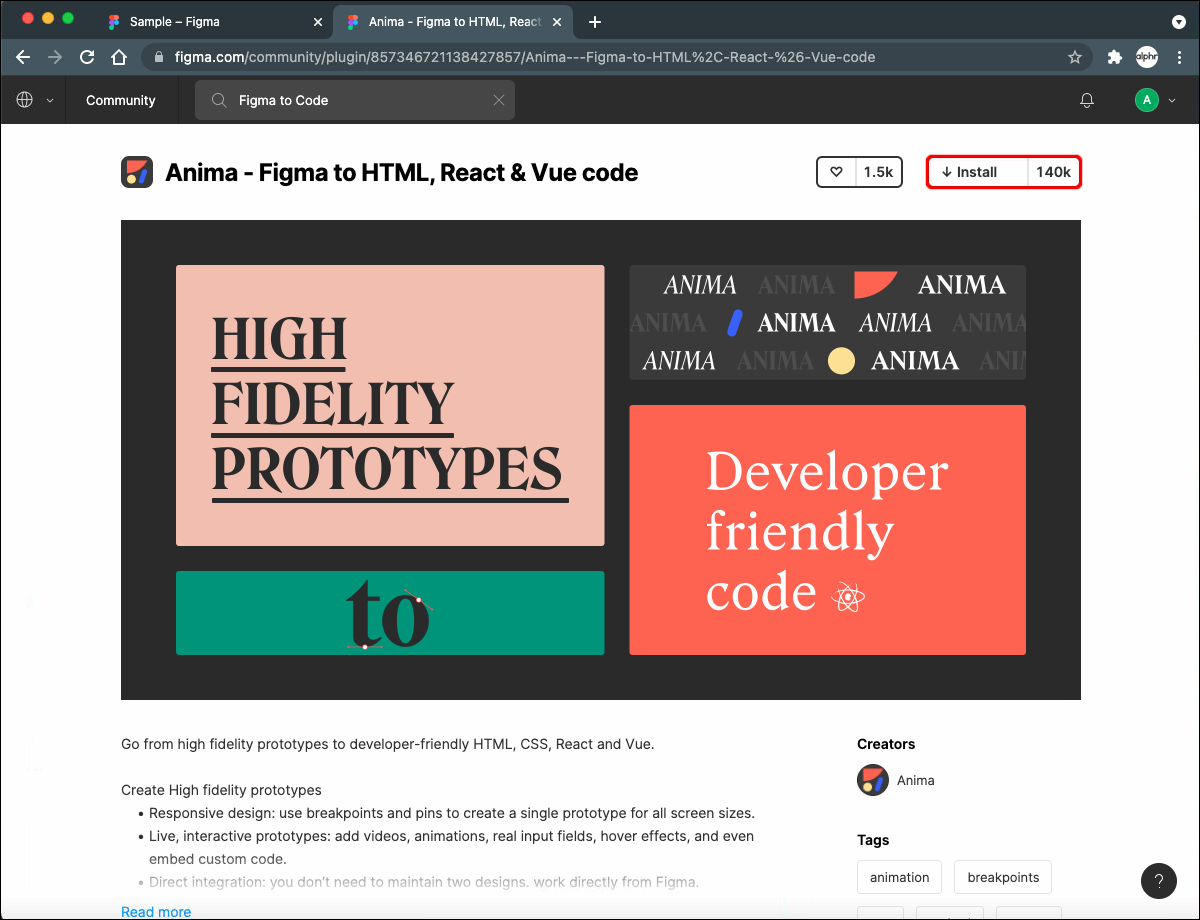 - Type “Anima for Figma.”