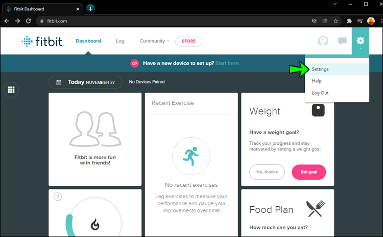 - Open your Fitbit dashboard or Fitbit app, then press the gear icon.