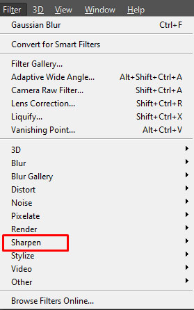 - Select ‘Filter’ and ‘Sharpen.’