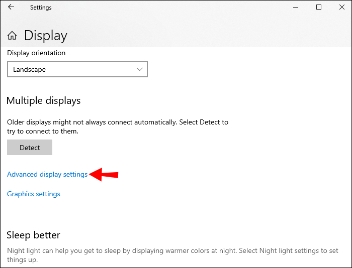 - Scroll down and select the “Advanced Display Settings” section.