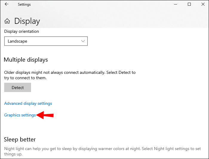 - Scroll down again and click the “Graphics settings” link.