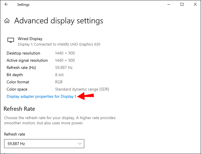 - Click on “Display Adapter Properties.”