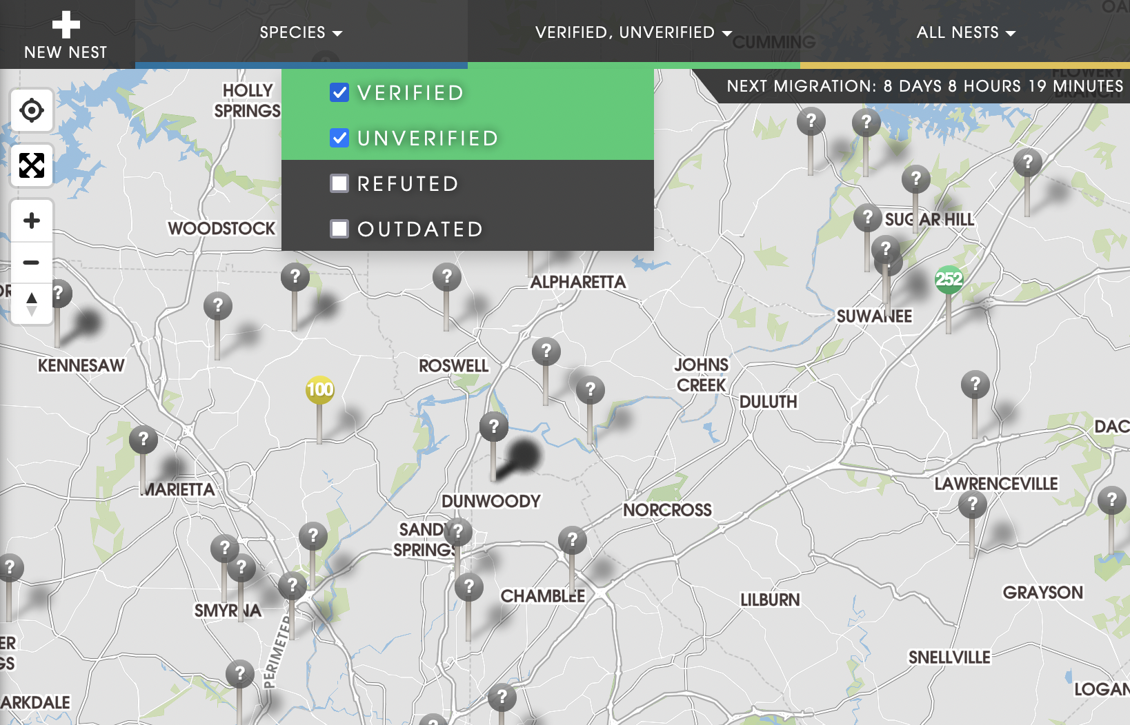 - You can filter out Unverified Nests by clicking the Verified/Unverified button. Then, deselect the Unverified option.