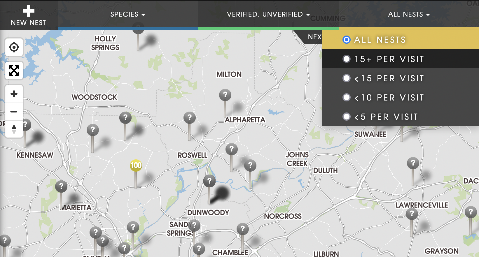 If you find new Nests, you can report them by clicking the + New Nest option in the upper right. Users can add advice for visitors and rate Nests after getting verified.