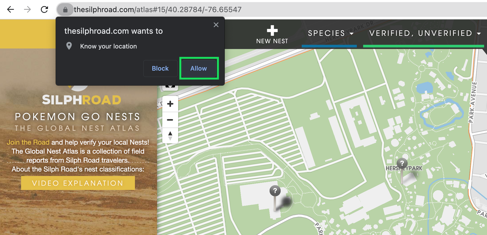 SilphRoad lets users see which Nests are verified, what is spawning, and even when the next migration will happen. Here’s how to use it: