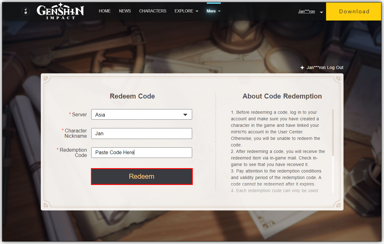 Genshin Impact runs on three servers: Europe, America, and Asia. Logically, you’d think that the codes you receive only work on a single regional server, but that’s not always the case. For example, one expired code had the following rewards: